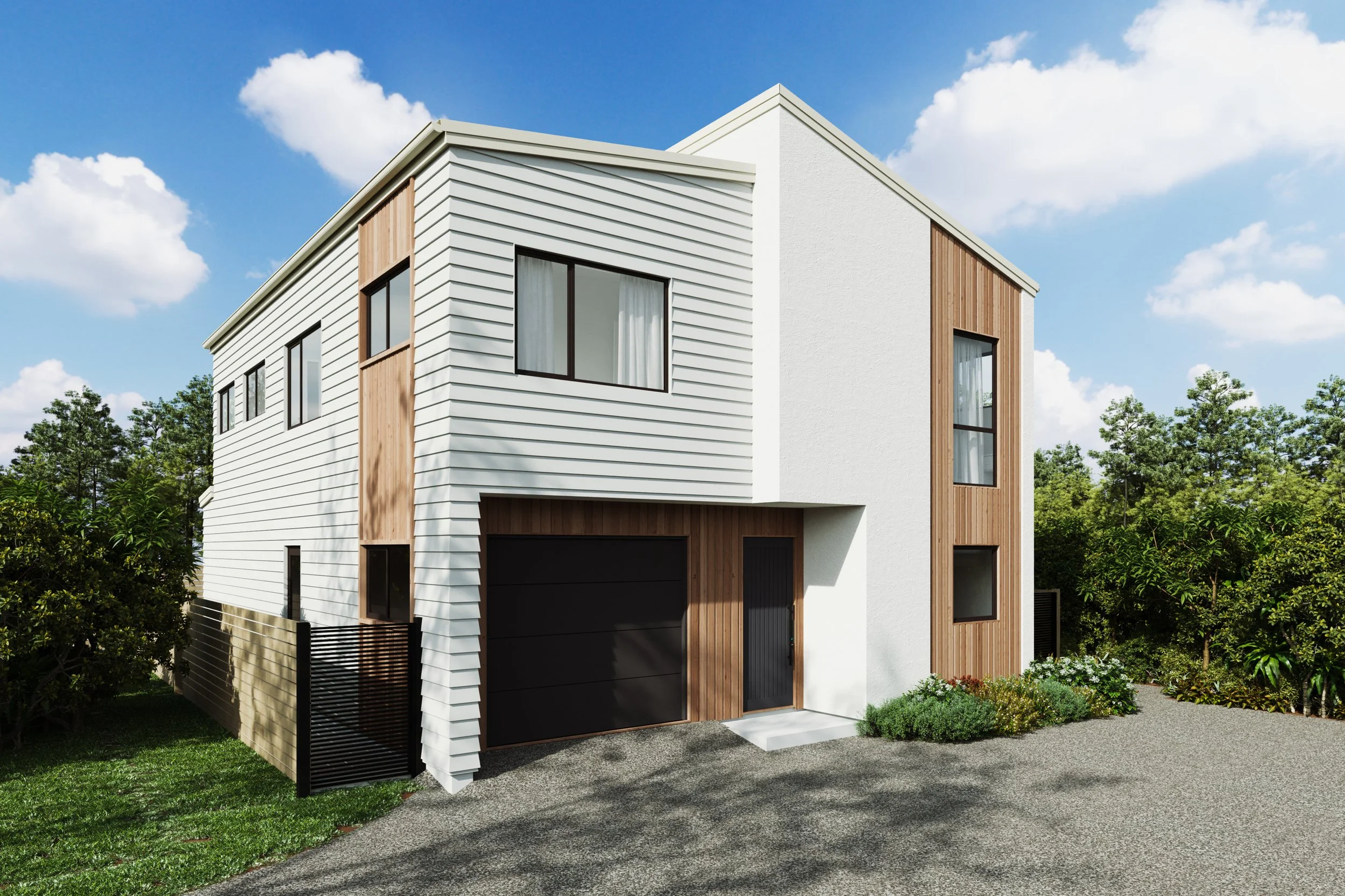 Based on our Rarawa plan, this home has been delivered on a newly subdivided site, making efficient use of the land while creating a well-considered family layout. Four bedrooms are positioned upstairs, with a fifth room on the ground floor that can be used as a bedroom or media room, offering flexibility to suit changing needs.