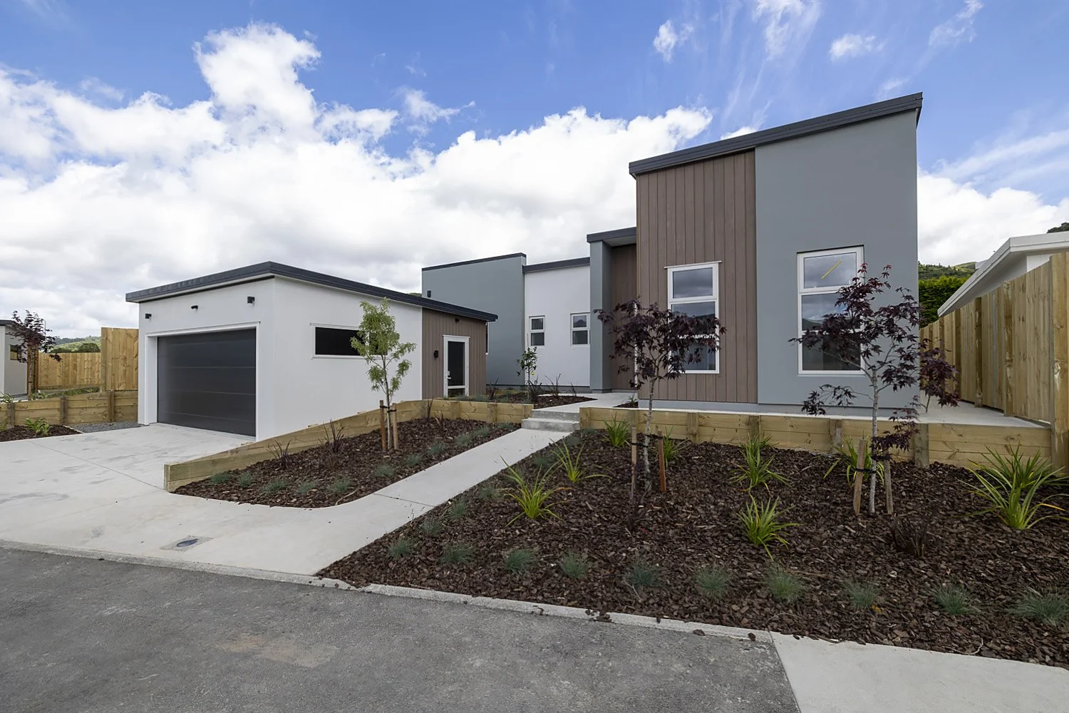 Comprising of four-bedroom homes with 2.5 bathrooms, this development was designed with a strong focus on layout, finish, and livability. Features include generous outdoor spaces, and an upgraded interior specification with higher stud heights, stone benchtops, tiled bathrooms, frameless showers, and fully fitted laundries. Each home has its own unique floor plan and selected finishes, with a contemporary exterior of Integra panel, plaster, and vertical Abodo cedar. Explore the full build journey below.
