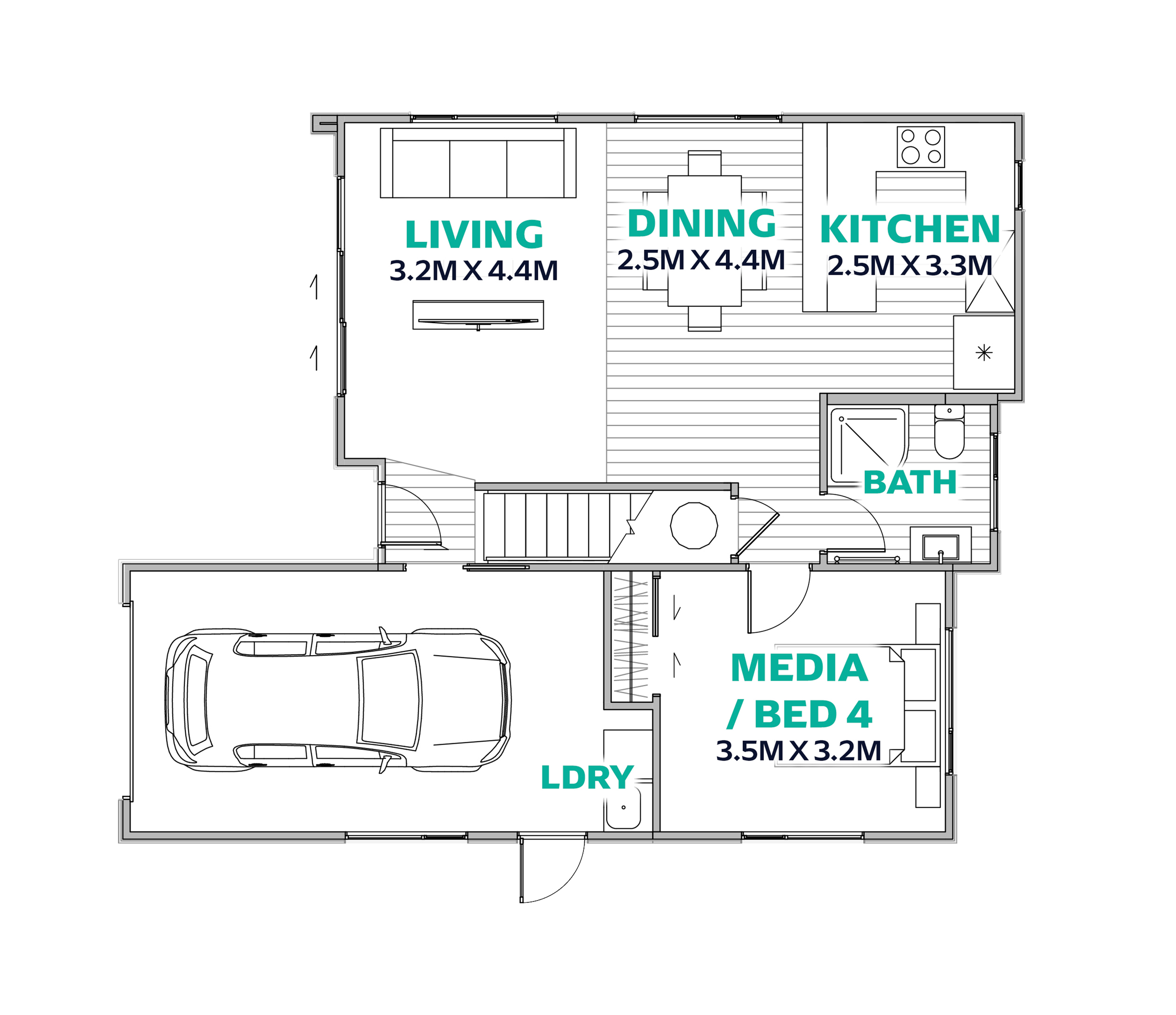 The Tapuae Beach plan offers a calm, well-organised layout with an easy flow from the kitchen to the dining and living areas, creating a bright central space for everyday living. On the ground floor, a flexible media room can double as a comfortable fourth bedroom if you need the extra space, giving the home plenty of adaptability for different household setups. Upstairs, three well-proportioned bedrooms and two bathrooms, including a private master suite, create a relaxed and practical family zone. With an internal-access garage, great storage, and a clean modern exterior, this design delivers a simple and functional home that suits a wide range of lifestyles.